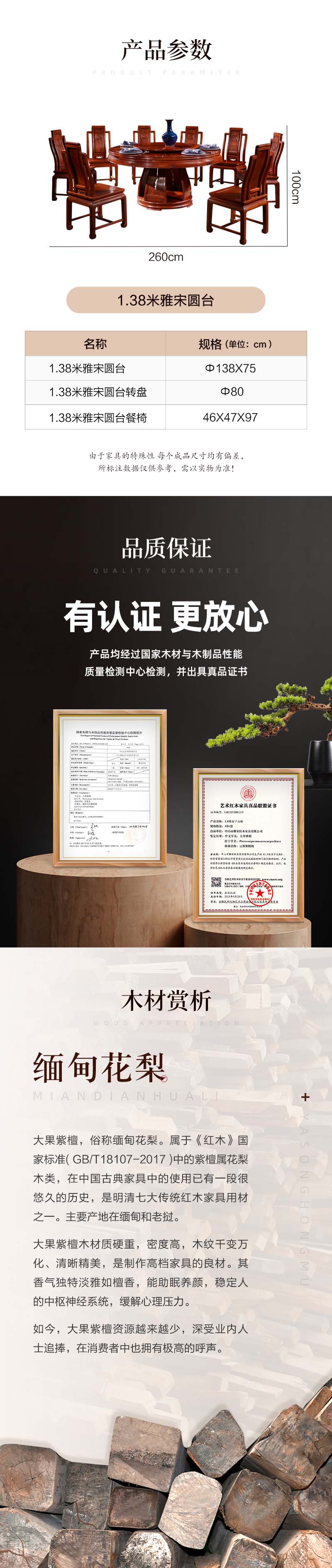 產(chǎn)品名稱:1.2米/1.38米/1.53米雅宋圓臺
